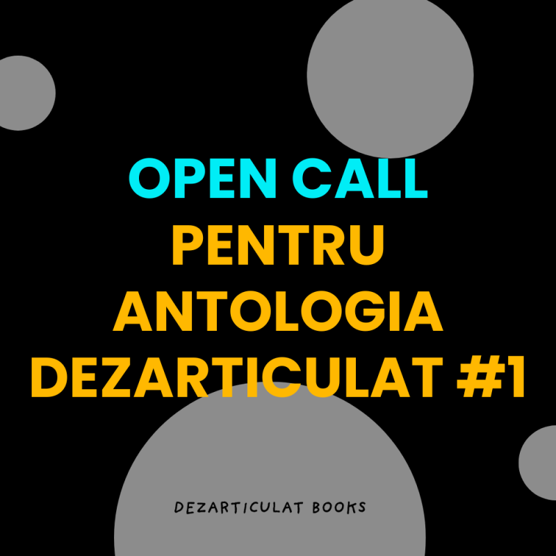 Editura Dezarticulat anunță cu entuziasm deschiderea unui apel de contribuții pentru primul număr al antologiei DEZARTICULAT #1. Ce căutăm În cadrul acestui apel, invităm scriitori și scriitoare, fie că sunt debutanți, nedebutați, consacrați sau în curs de consacrare, să trimită lucrările lor de ficțiune la adresa dezarticulat666@gmail.com, în format Microsoft Word (doc sau docx), font […]